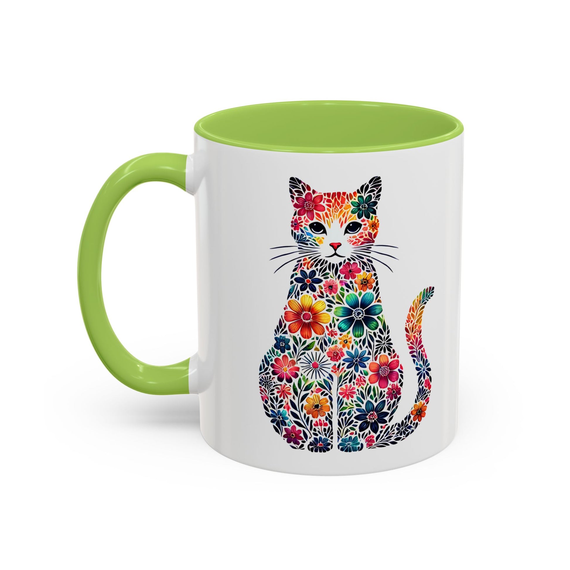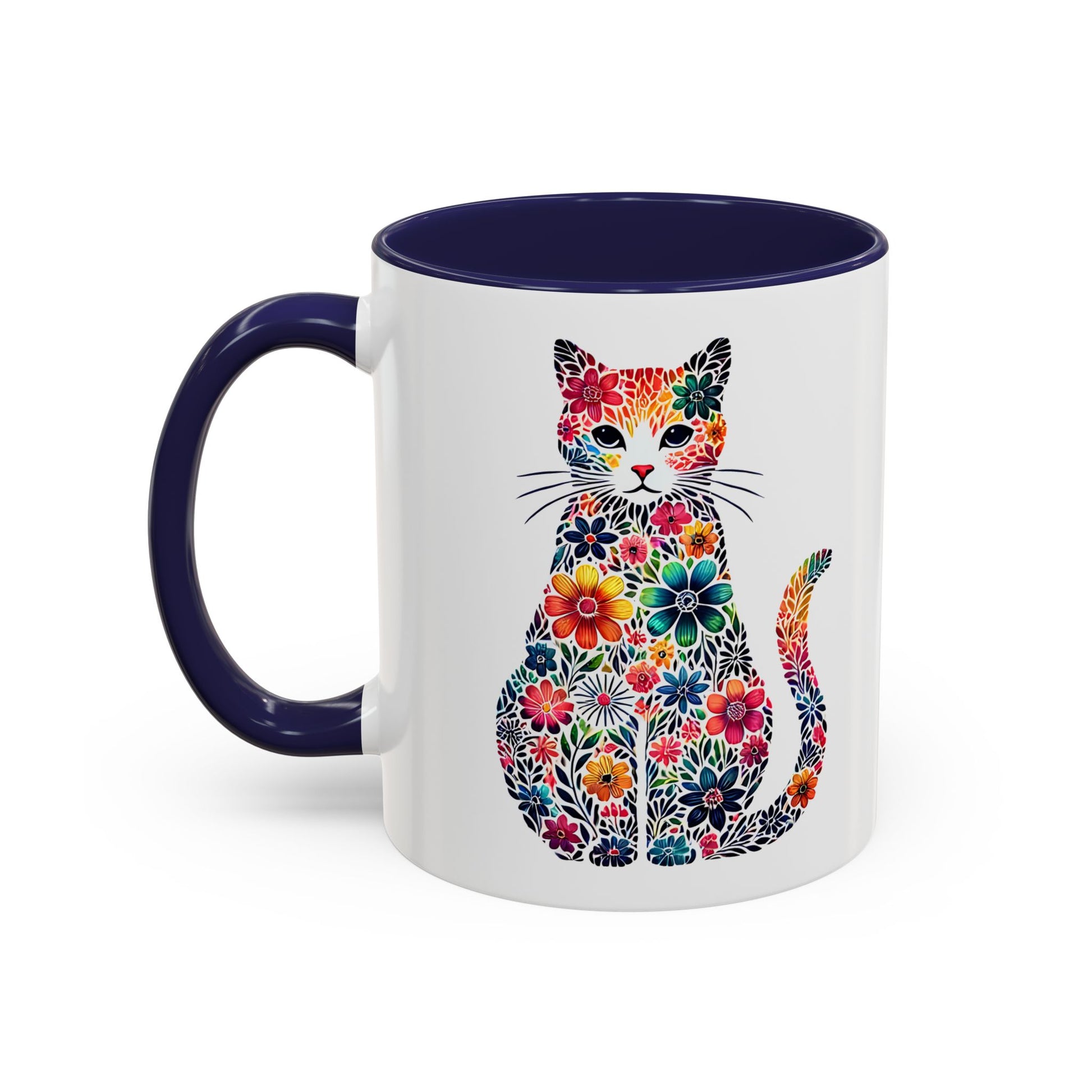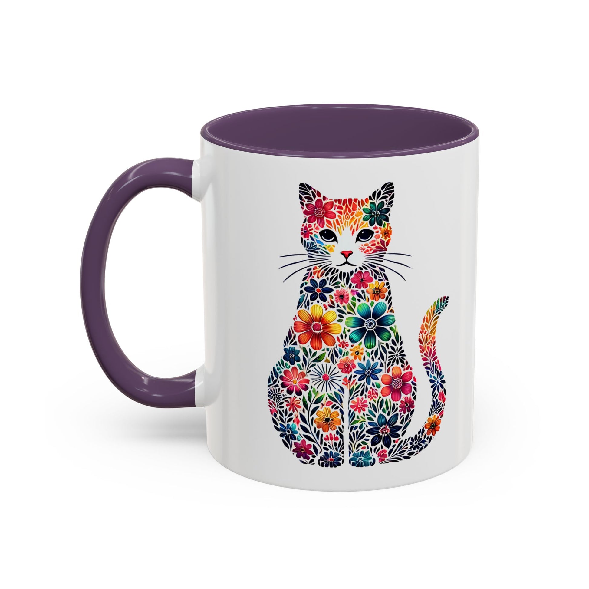 Brighten your mornings with this delightful Accent Coffee Mug. Featuring a playful cat design embellished with vibrant floral patterns, this mug exudes creativity and joy. Perfect for sipping your favorite hot beverage, it brings a lively touch to your kitchen or office desk. Whether you're starting your day or enjoying a cozy night in, it enhances every moment with its colorful charm. Ideal for cat lovers and art enthusiasts alike, this mug makes a thoughtful gift for birthdays, housewarming parties, or simply to show appreciation. Celebrate special occasions with a mug that speaks to your unique style!