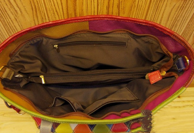 New Fashion Trend Colorful Contrast Color Plaid Stitching One-Shoulder Messenger Casual Leather Cowhide Handbags