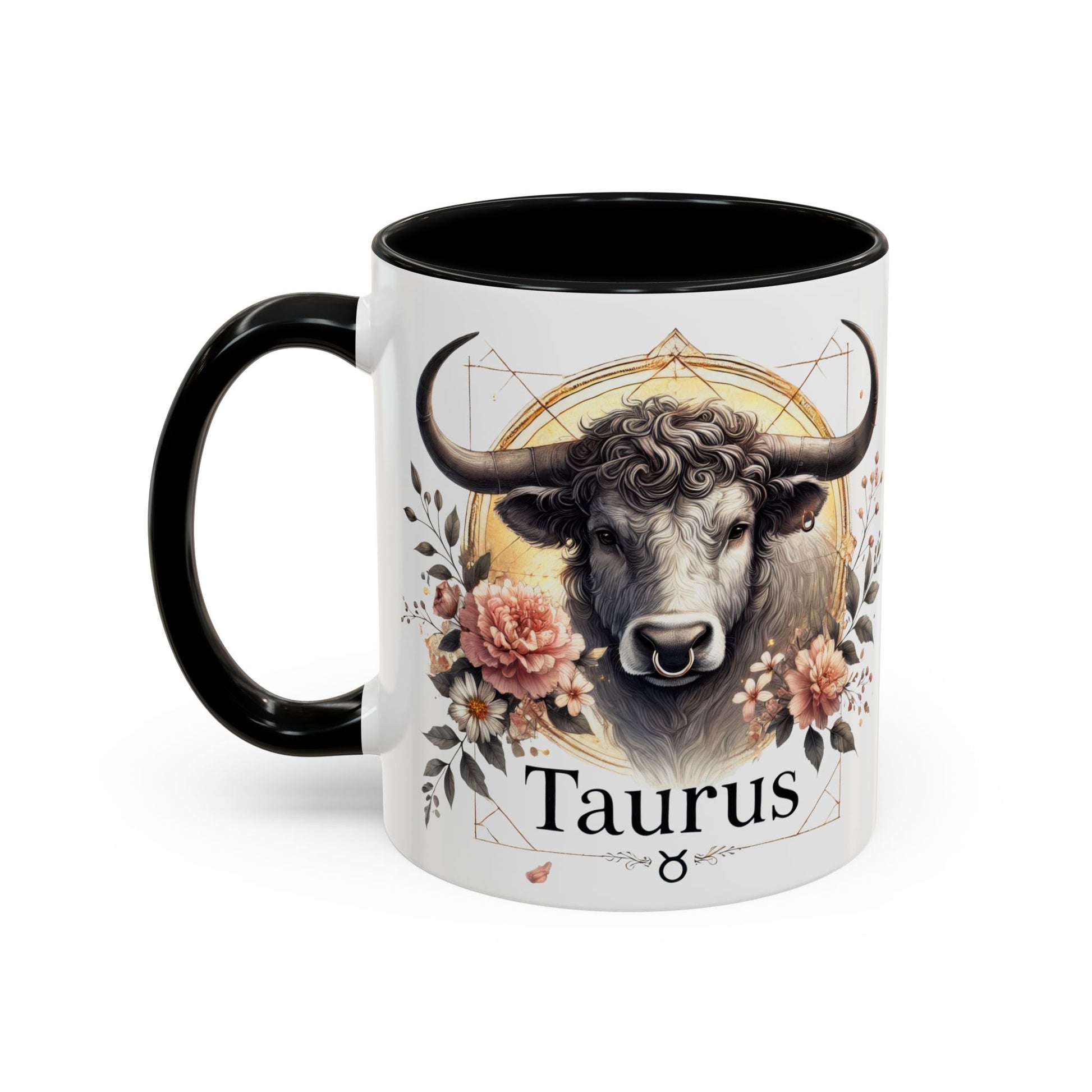 Taurus Floral Accent Coffee Mug | Astrology Gift for Taurus Fans | Office, Birthday, Zodiac Decor, Personalized Mug, Home & Kitchen