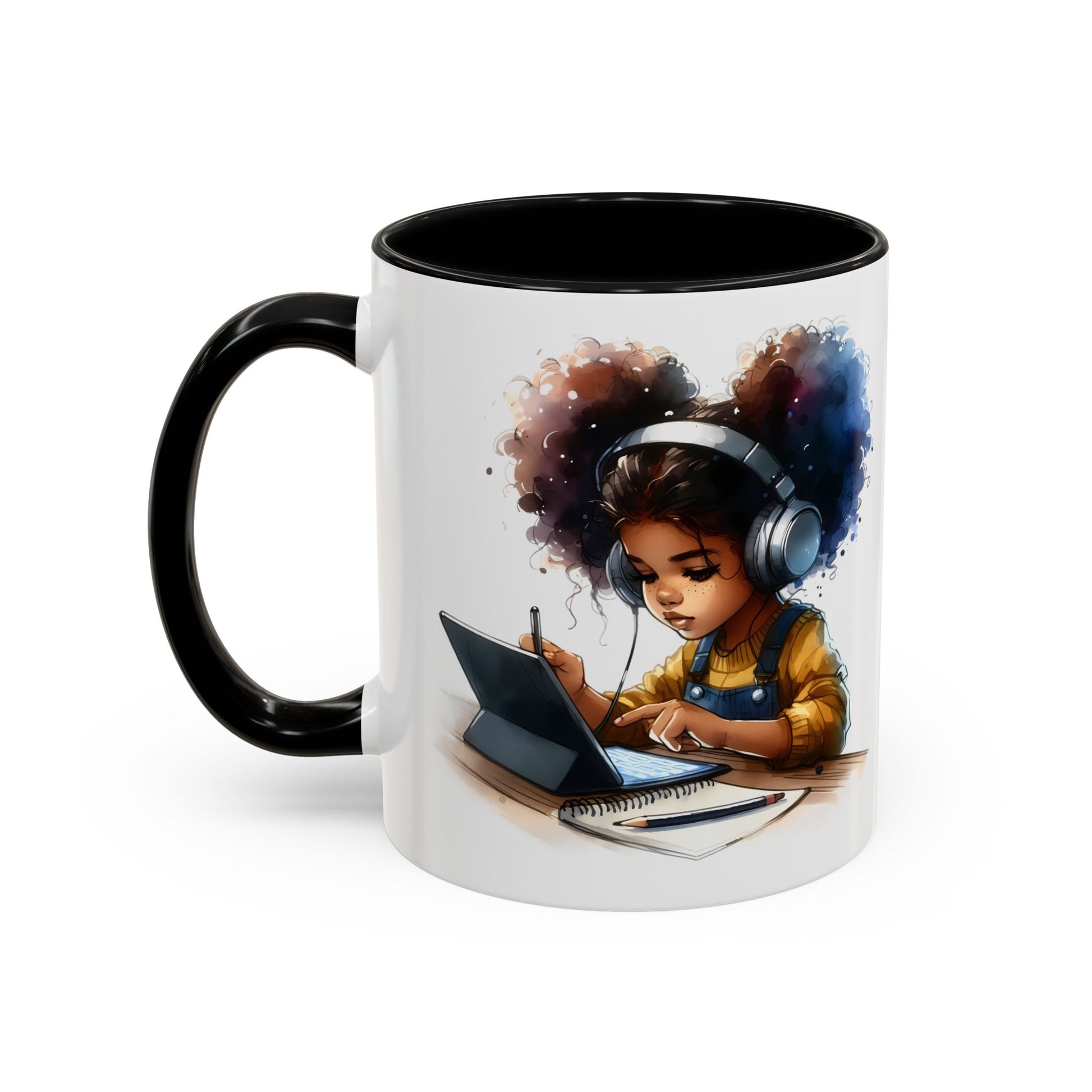 Vibrant Kid's Study Mug, Art Inspired Coffee Cup, Black Handle Tea Mug, Creative Gift for Students, Birthday Present