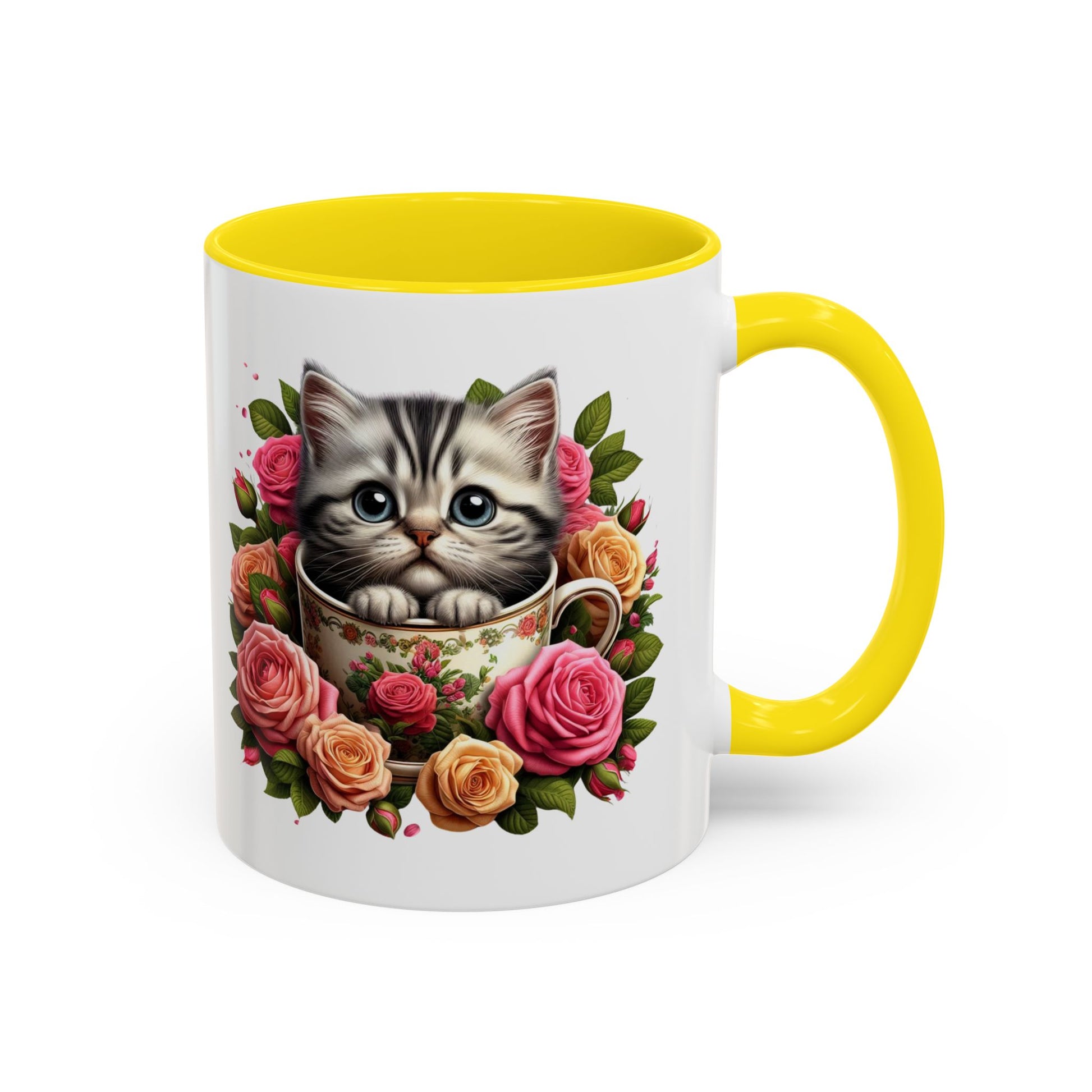 Introducing a vibrant Accent Coffee Mug, perfect for adding a splash of personality to your morning routine. With its charming floral designs featuring adorable kittens, this mug elevates your coffee or tea experience. Imagine sipping your favorite beverage while enjoying the warm, cozy feeling it brings. Designed for cat lovers and floral enthusiasts, this mug is an ideal gift for any occasion—from birthdays to holidays like Mother’s Day or Valentine’s Day. Its eye-catching colors and glossy finish are sure to brighten your day and make every sip enjoyable!